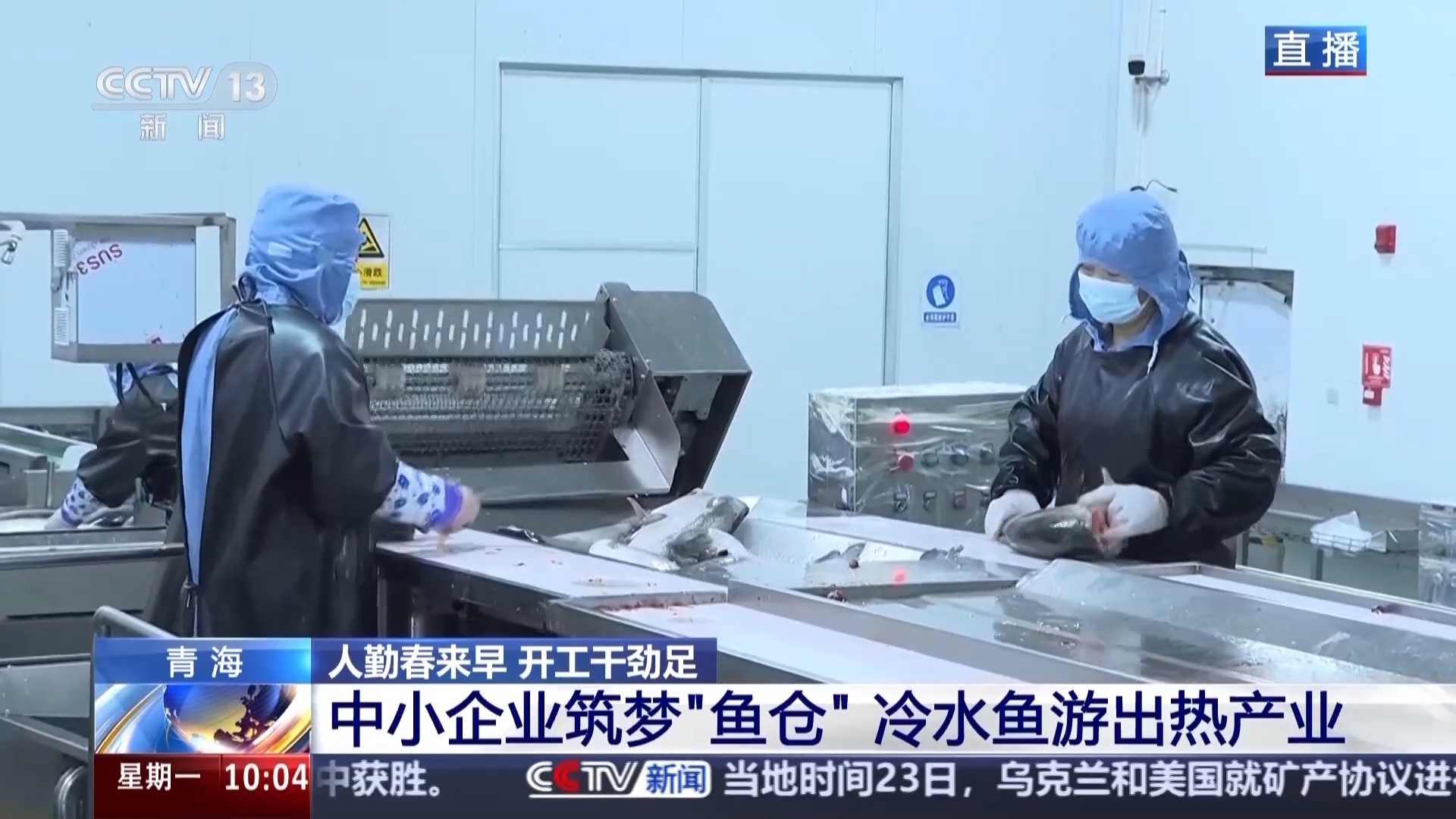总台记者 崔建军:目前,龙羊峡生产的三文鱼在国产三文鱼市场占有率超过50%,还出口到十余个国家和地区,出口货值占全国同类产品出口总额的98%,越来越多的国产三文鱼“游”上了海外餐桌。这两年,随着青海省冷水鱼产业专项扶持的双重加持,让中小企业更有底气,更有干劲。